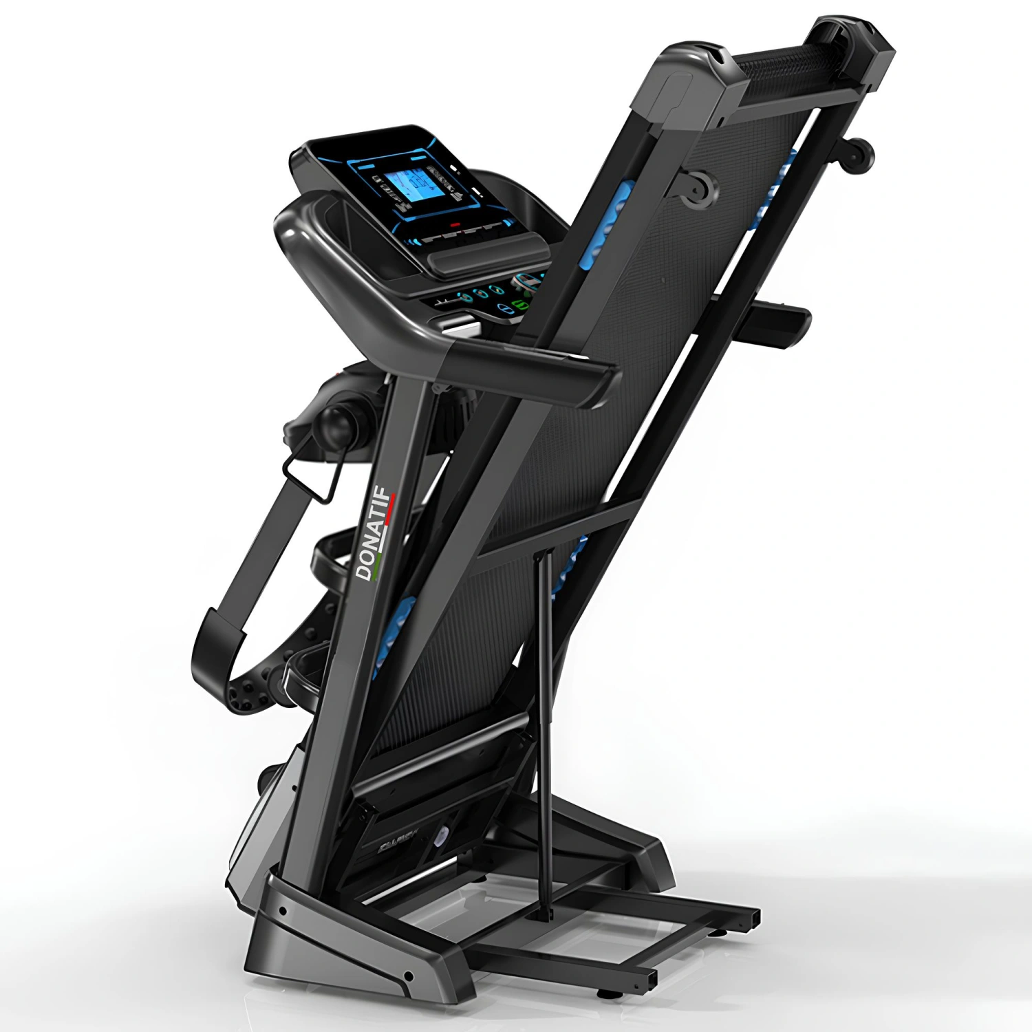 El diseño plegable y compacto permite un fácil almacenamiento después de su uso, maximizando el espacio disponible. Con Bluetooth incorporado, puede sincronizar fácilmente su teléfono inteligente, tableta u otros dispositivos compatibles para acceder a una variedad de medios y aplicaciones de fitness.