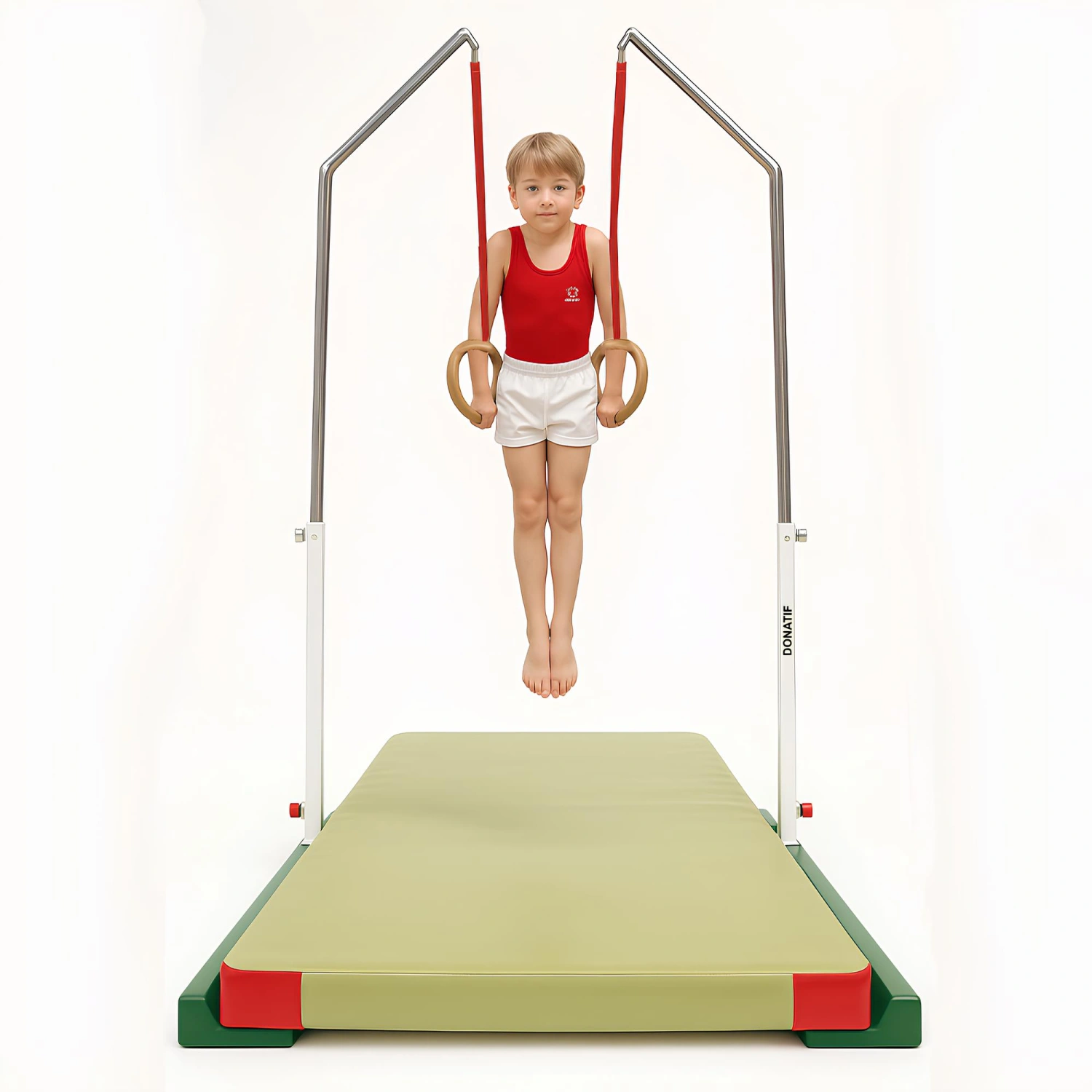 Le château pour anneaux Donatif pour enfants est conçu pour être utilisé dans les gymnases pour jeunes, les centres sportifs, les écoles et les associations amateurs qui proposent des cours de gymnastique artistique pour enfants. Grâce au système de réglage de la hauteur, il peut être utilisé par des enfants d’âges différents, ce qui le rend parfait pour les activités motrices de base et les programmes d’entraînement ciblés.