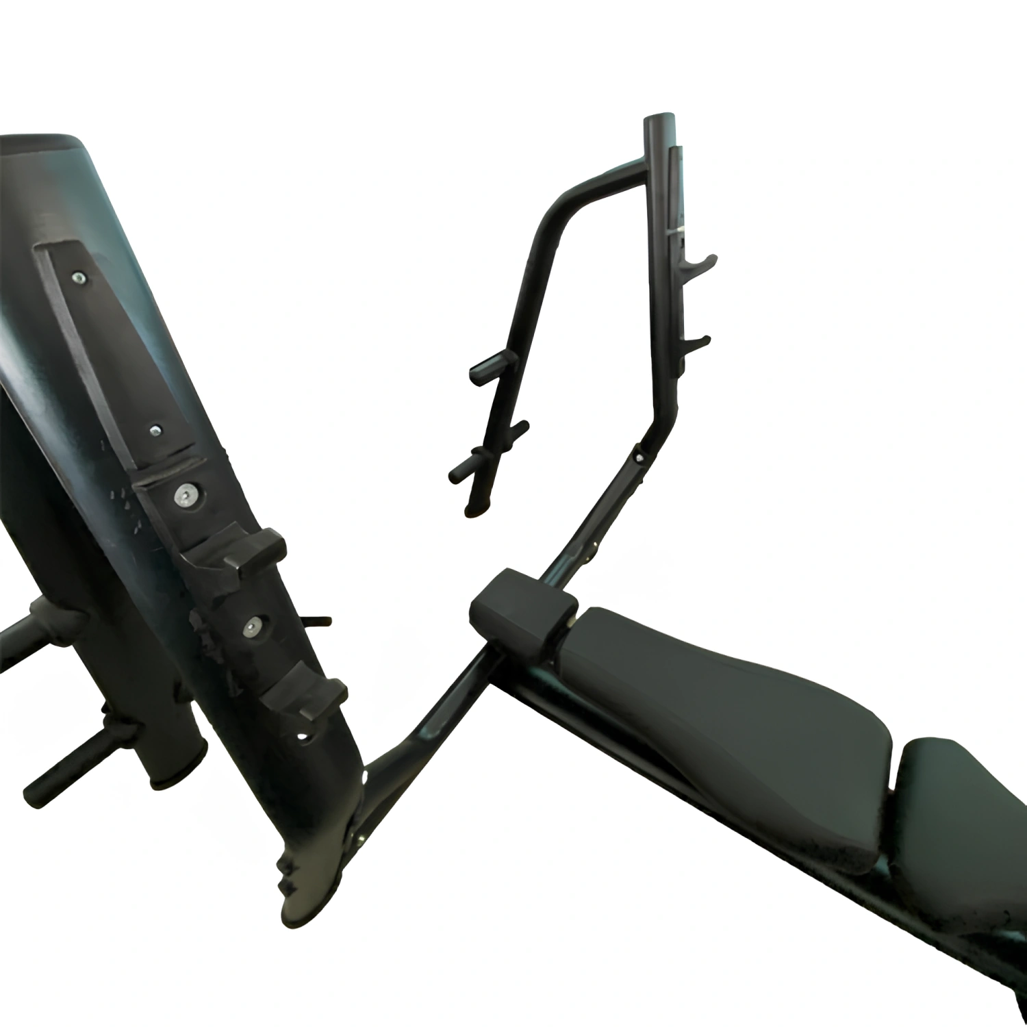 Il supporte jusqu’à 1200 kg de charge, s’adaptant à une large gamme d’exercices avec des disques standard, sans nécessiter l’achat d’équipement supplémentaire.