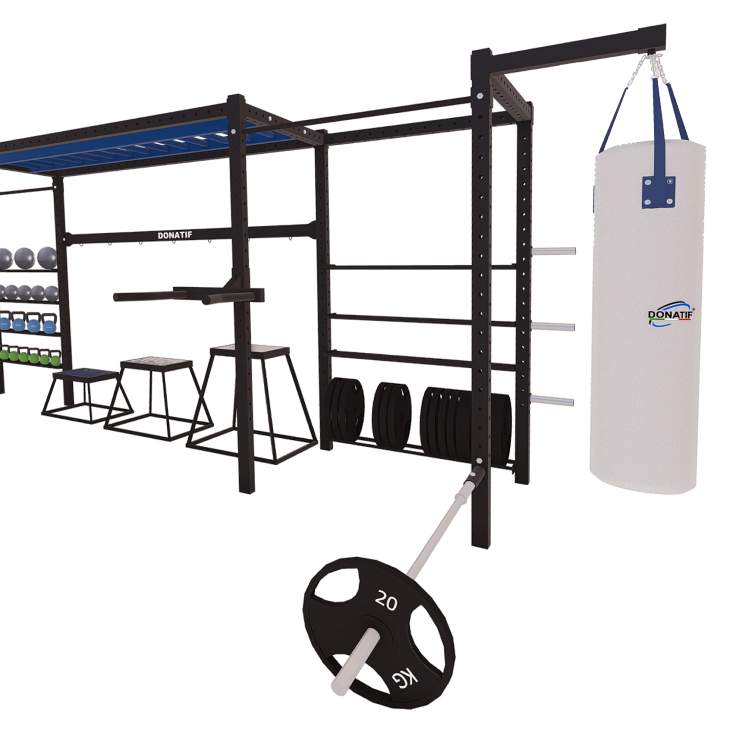 Indiquez les personnalisations que vous souhaitez et cliquez sur 'Enregistrer la personnalisation'Le centre de combat multifonction - SC128 Donatif représente l’excellence dans le monde de l’entraînement fonctionnel et de l’entraînement athlétique professionnel. Entièrement composé d’acier à haute résistance, il utilise un tube carré de 80x80x3 mm pour assurer une résistance et une durabilité maximales. Le revêtement T-Flex assure une protection supplémentaire, augmentant la résistance aux chocs et aux agents extérieurs. La configuration de base comprend : structure de support, sacs de frappe, T-Bar, porte-disques, accessoires d’objets, stations de trempage et crochets en J. Chaque composant est conçu pour une utilisation intensive dans des environnements professionnels tels que les gymnases et les centres sportifs. La structure mesure 10 mètres de profondeur, 150 cm de large et atteint une hauteur de 270 cm, pour un poids total de 1000 kg. Il dispose de deux types d’échelles pour les exercices de vitesse, de coordination et d’endurance, parfaites pour les circuits de haute intensité et l’entraînement des combattants. Il existe plusieurs zones de rangement des accessoires, y compris des crochets centraux pour une fonctionnalité maximale. Les sacs peuvent être repositionnés ou retirés très facilement, ce qui permet une grande variété de configurations. Enfin, la structure est entièrement personnalisable : la taille, les couleurs, la quantité de sacs, les accessoires, les fonctionnalités et même le logo de la salle de sport du client peuvent être intégrés sur demande.