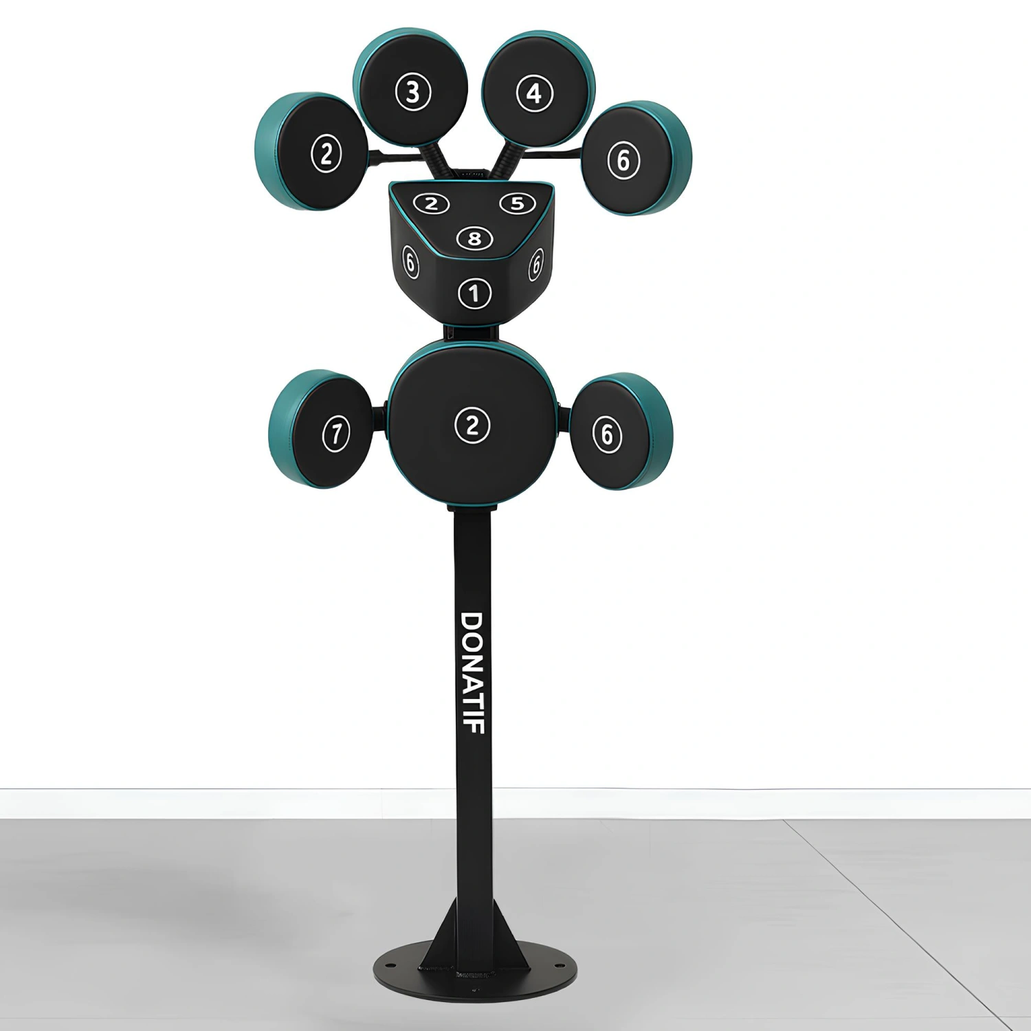 Le sac de frappe au sol avec 12 cibles se prête à de multiples contextes et styles d’entraînement. Il est idéal pour les sports de combat tels que la boxe, le kickboxing et les arts martiaux, soutenant le développement de la technique, de la vitesse et de la stratégie.