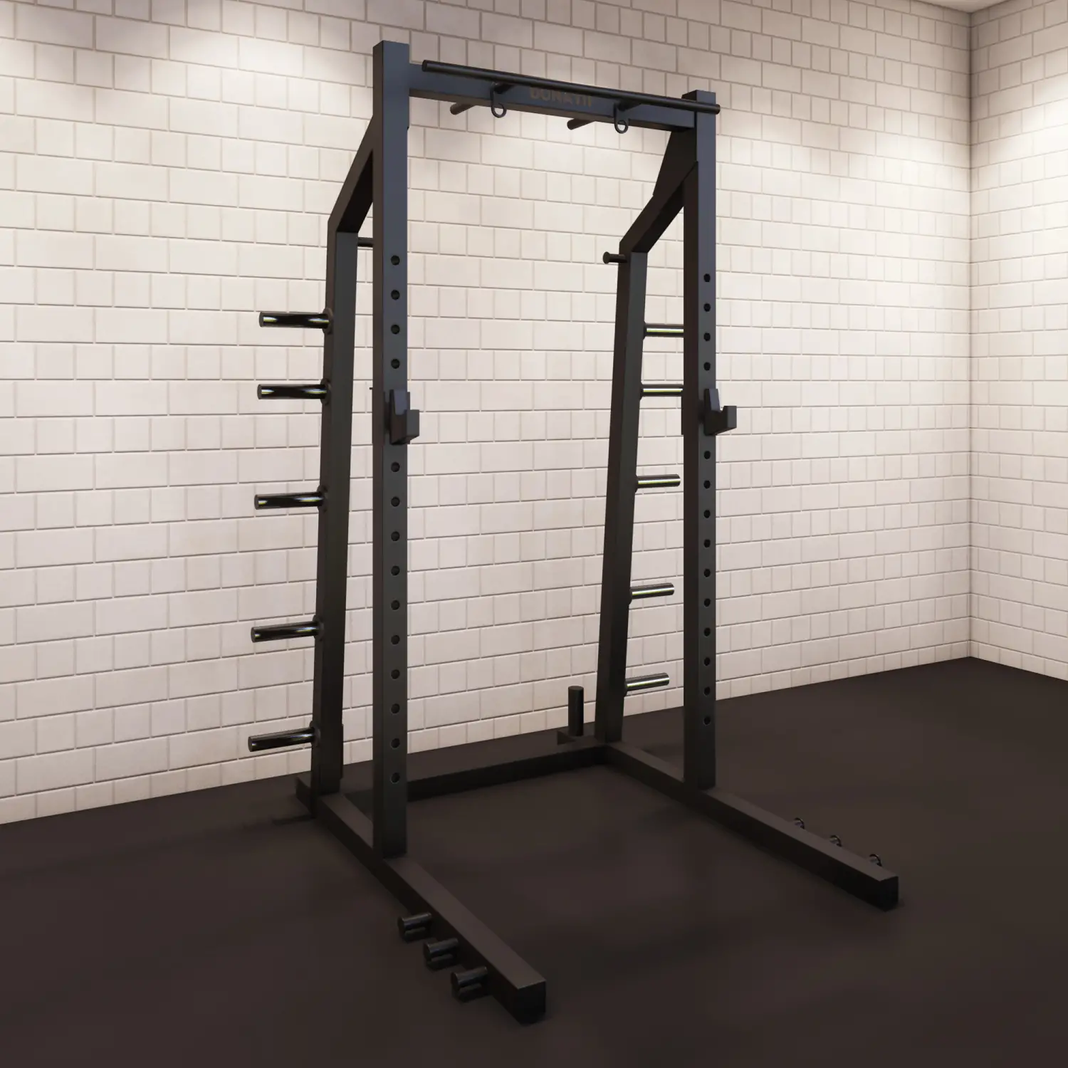 Notre demi-rack olympique est conçu pour être utilisé à la fois dans les environnements domestiques et les gymnases professionnels. En raison de sa polyvalence, il peut être utilisé pour une variété d’exercices, des tractions aux séances d’haltérophilie, en passant par les squats et autres mouvements fondamentaux.