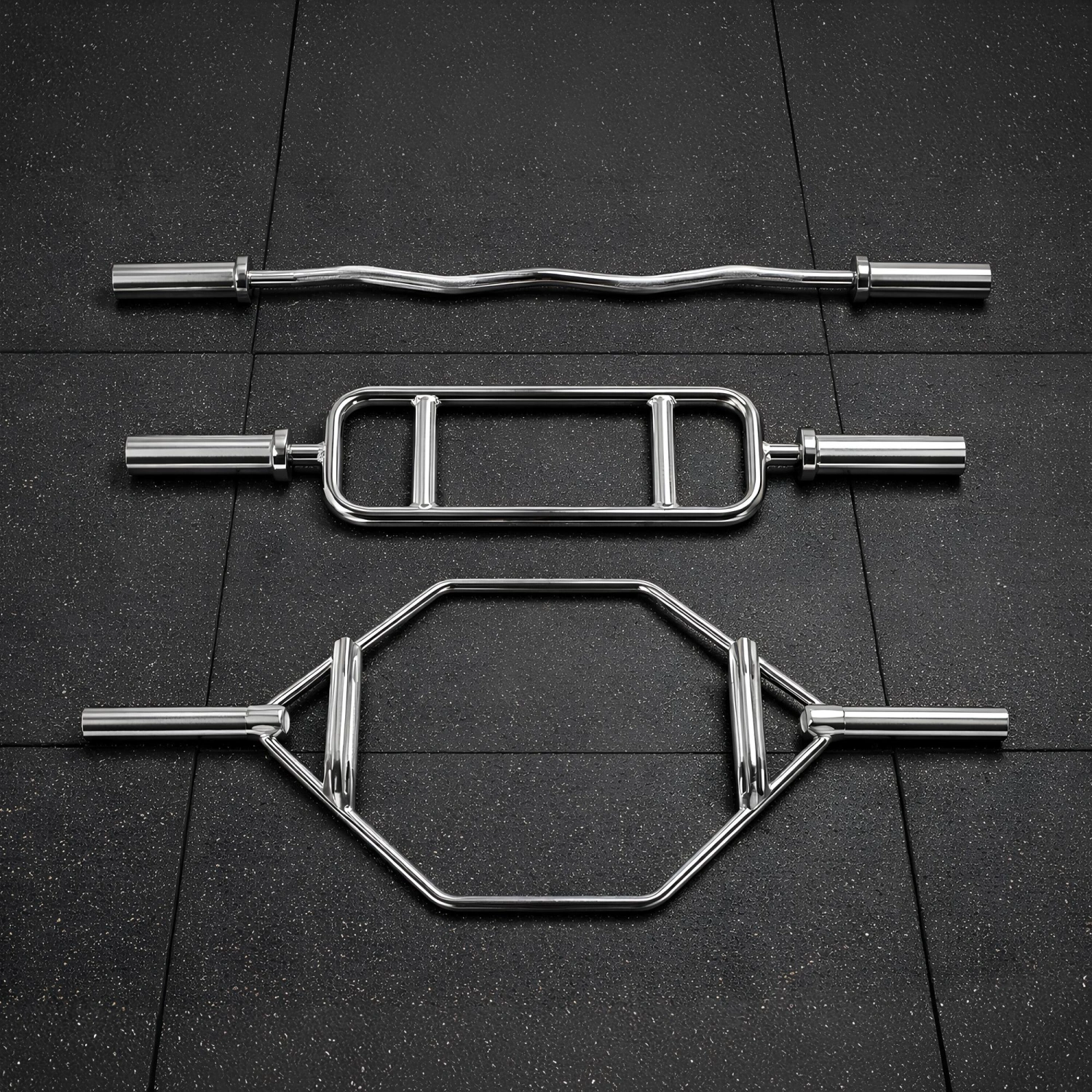 La barre EZ est particulièrement adaptée aux exercices tels que les flexions des biceps et les presses françaises, réduisant ainsi le risque de blessures au poignet. La barre de triceps est parfaite pour les triceps et les pectoraux, assurant une prise en main ergonomique. La barre Hex Trap Bar est idéale pour les soulevés de terre, grâce à sa forme qui vous permet de maintenir une posture correcte, en minimisant le stress sur le dos.
