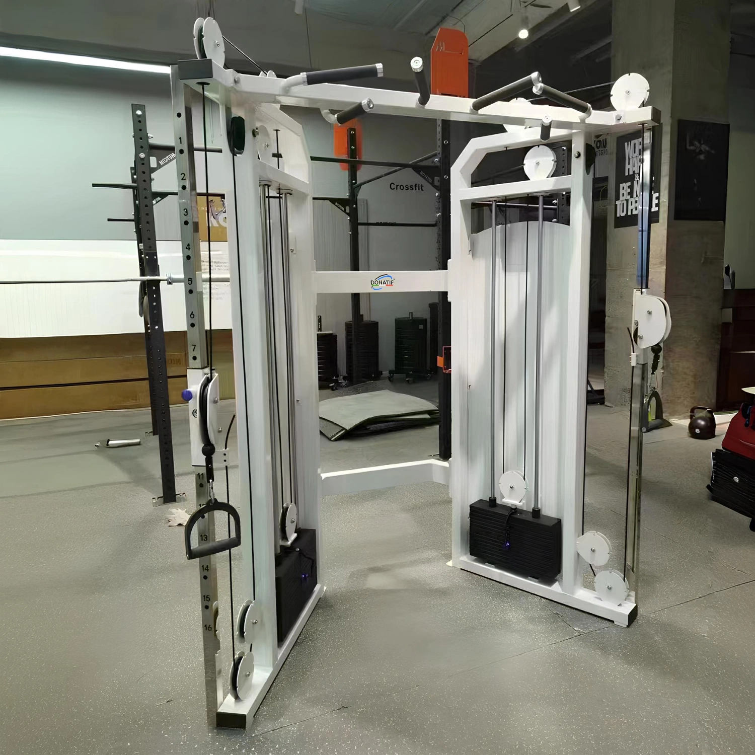 Indiquez les personnalisations que vous souhaitez et cliquez sur 'Enregistrer la personnalisation'Le FTS Glide de Donatif est une machine multifonctionnelle, conçue pour offrir un entraînement complet du corps. Fabriquée avec un cadre en acier robuste, cette machine peut résister à des séances d’entraînement intenses tout en assurant stabilité et sécurité. La machine se distingue par sa capacité à s’adapter aux besoins d’entraînement les plus divers, faisant du FTS Glide un choix idéal pour les centres de fitness professionnels et les gymnases à domicile. La machine est équipée d’une pile de poids de 150 kg, qui peut être étendue selon les besoins, et offre une large gamme d’exercices pour travailler tous les groupes musculaires, des pectoraux aux quadriceps. Avec ses dimensions compactes (profondeur de 96 cm, largeur de 170 cm et hauteur de 220 cm), le FTS Glide est parfait pour les espaces limités, sans compromettre les performances.