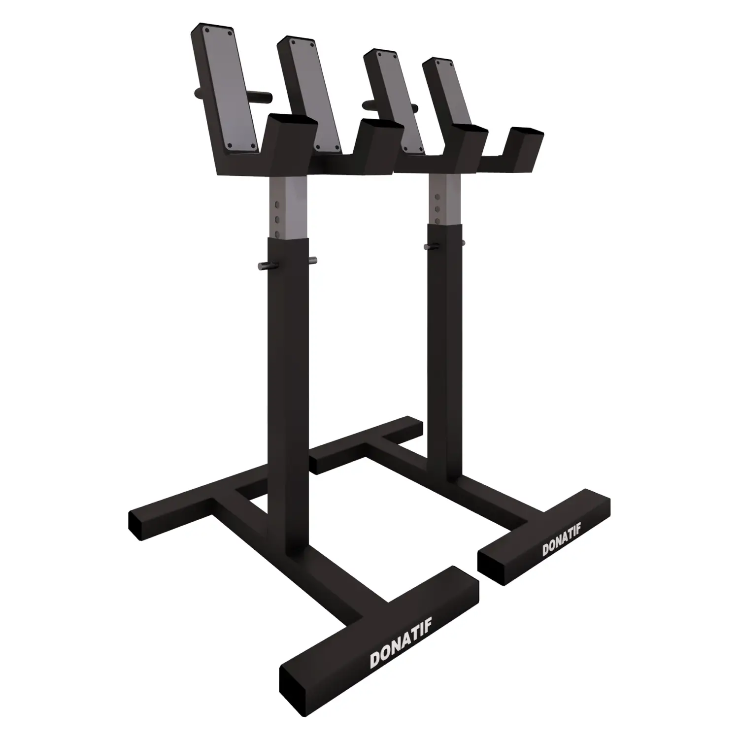 Le support Dumbbell Spotter - Réglable par Donatif est conçu pour fournir un soutien maximal pendant les entraînements avec haltères. Entièrement fabriqué en acier de haute qualité, ce support offre une structure solide et robuste, capable de supporter une charge maximale de 100 kg. Les dimensions réglables (hauteur de 99 à 121 cm, largeur 41 cm et profondeur 62 cm) assurent une polyvalence inégalée, s’adaptant parfaitement aux besoins de chaque athlète et type d’exercice.