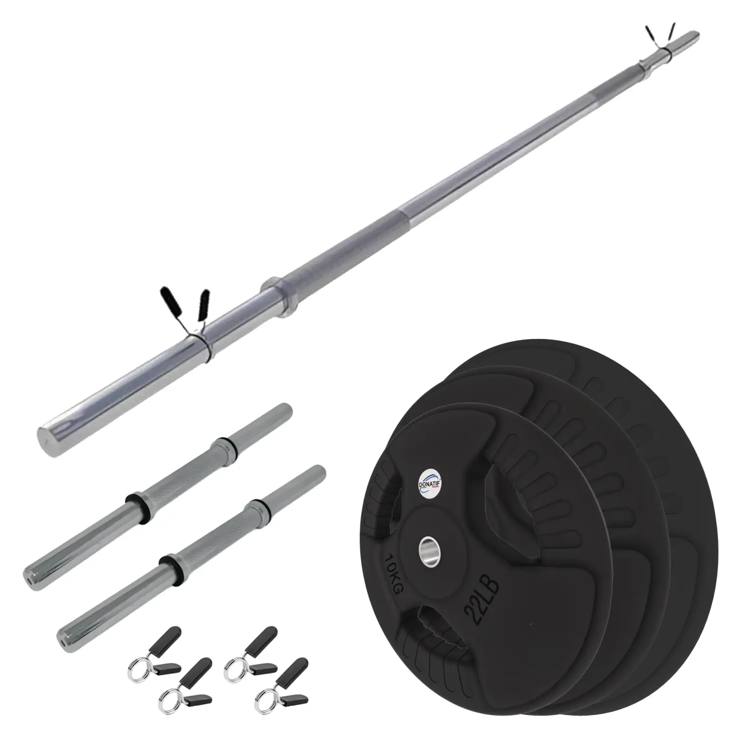 Choisir l’ensemble d’haltères et d’haltères avec disques caoutchoutés de 160 kg, c’est investir dans un produit de haute qualité, conçu pour durer dans le temps et améliorer vos performances athlétiques. L 'Donatif a conçu ce kit dans un souci de fonctionnalité et de sécurité, garantissant un entraînement efficace et sans compromis. La présence de disques caoutchoutés avec poignées facilite non seulement le changement de poids, mais assure également une plus grande sécurité lors de l’utilisation.