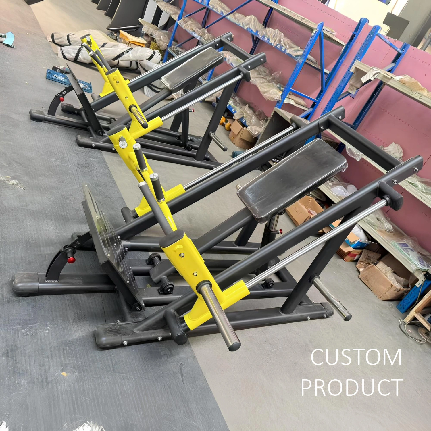 Indiquez les personnalisations que vous souhaitez et cliquez sur 'Enregistrer la personnalisation'La machine à rangs debout - RFA est une machine professionnelle à chargement libre conçue pour augmenter la force et l’hypertrophie des membres inférieurs avec une trajectoire guidée douce et naturelle. Construit avec une structure en acier robuste avec des dimensions de 124,5×192×116 cm et un poids total de 145 kg, il offre une stabilité maximale même en cas d’efforts intenses. La glissière inclinée glisse sur des guides linéaires de haute précision qui garantissent des mouvements sans frottement et un contrôle complet de la plage de travail. Sa conception compacte mais massive lui permet d’être facilement inséré dans les centres de fitness, les gymnases à domicile avancés ou les studios de PT, en conservant un look professionnel et élégant typique de la marque Donatif. Les poignées latérales ergonomiques permettent de libérer et de verrouiller rapidement la charge à tout moment du mouvement, ce qui augmente encore la sécurité lors de la performance avec des charges lourdes.