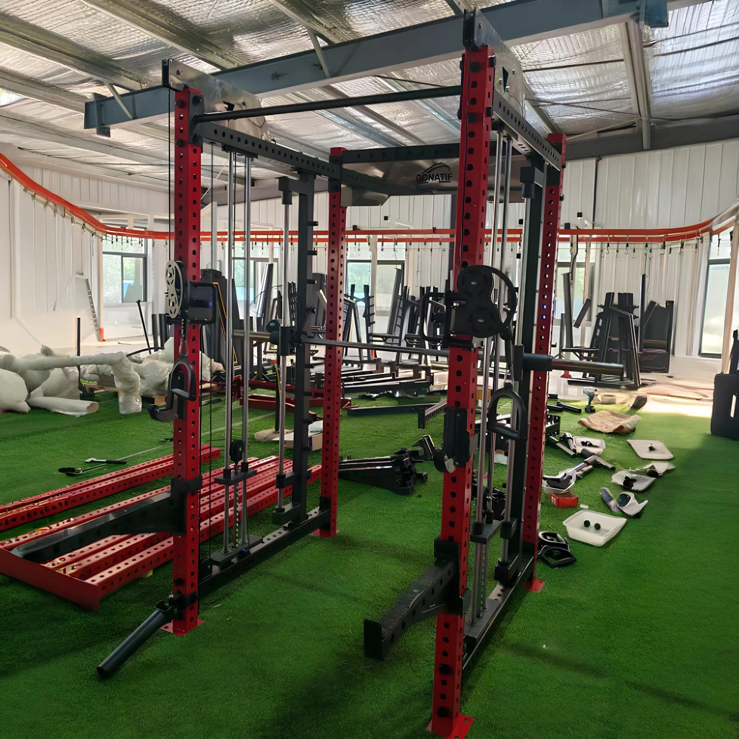 Un autre point fort est la possibilité d’utilisation simultanée par deux personnes : pendant qu’un athlète travaille avec des câbles ou la machine Smith, l’autre peut profiter de la barre de traction ou des accessoires sans compromettre la sécurité ou l’espace. Cette caractéristique rend le MR60 idéal dans les environnements partagés à fort trafic, où l’efficacité et l’optimisation de l’espace sont essentielles.