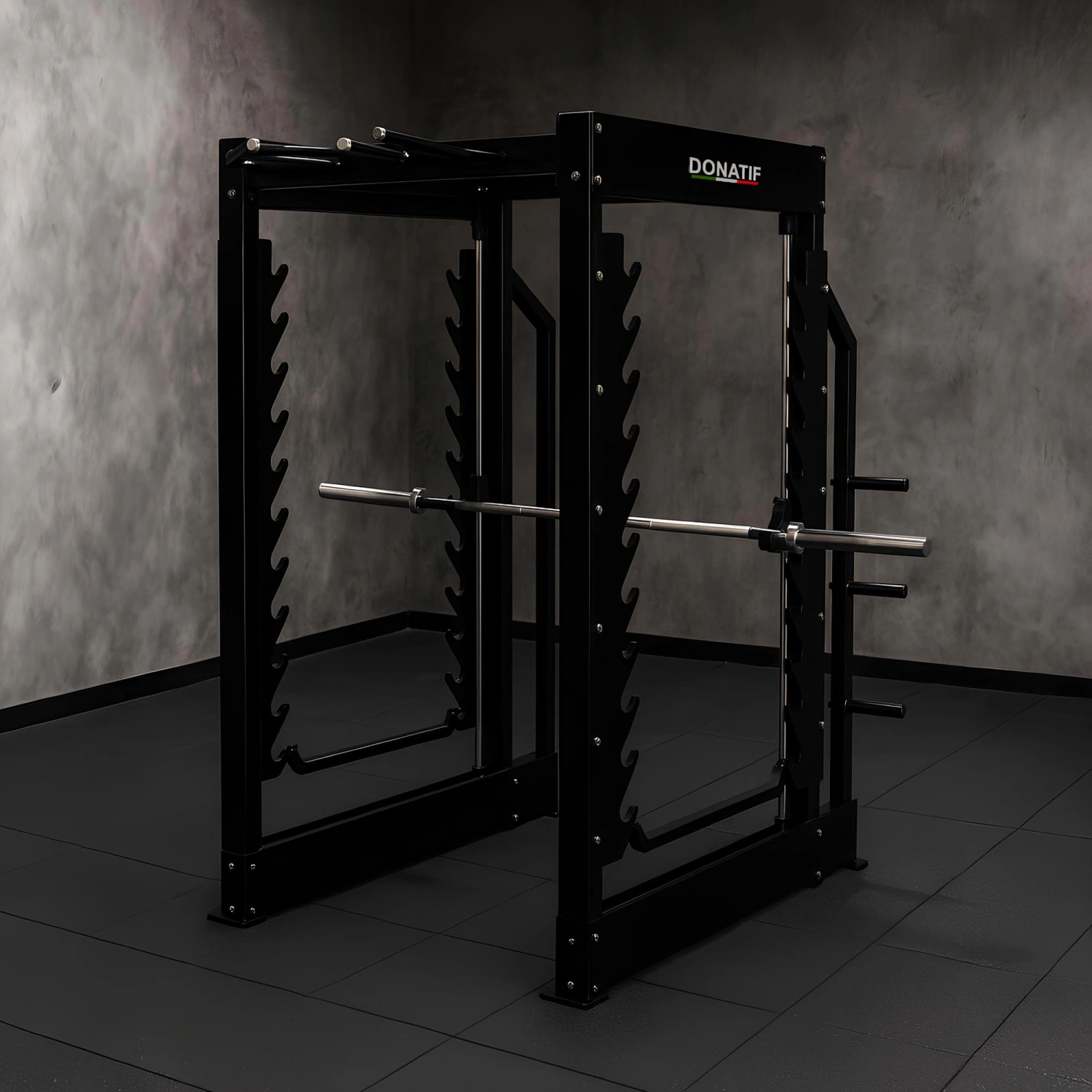 le Cage Rack avec Multipower de Donatif représente l’avant-garde dans le domaine des équipements de gymnastique. Ce modèle présente une conception biomécanique avancée qui offre une combinaison unique d’une barre guidée de diamètre olympique et d’un support avec 20 positions de support. Sa robustesse est garantie par un double châssis avec renfort latéral, assurant durabilité dans le temps et stabilité lors d’une utilisation intensive.