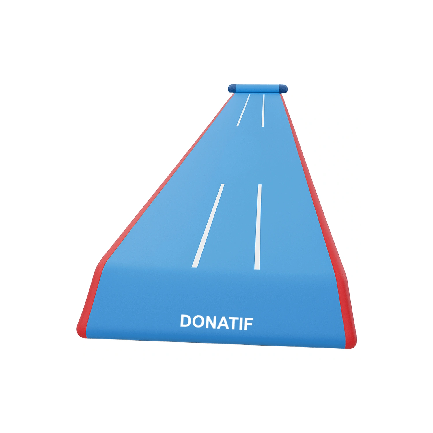 La piste de tumbling de gymnastique artistique 25 mt Donatif est conçue pour répondre aux besoins des athlètes de gymnastique artistique de haut niveau et des gymnases professionnels. La structure est divisée en trois zones principales : une zone d’élan de 1100 cm qui permet à l’athlète de développer sa vitesse et son élan, une zone de performance de 25 m de long reliée par des unités modulaires de 20 pouces et une zone d’atterrissage de 300x600 cm conçue pour assurer une sécurité maximale. Le revêtement en PVC assure confort, résistance et durabilité, tandis que la base antidérapante maintient la stabilité même lors d’exercices de haute intensité.