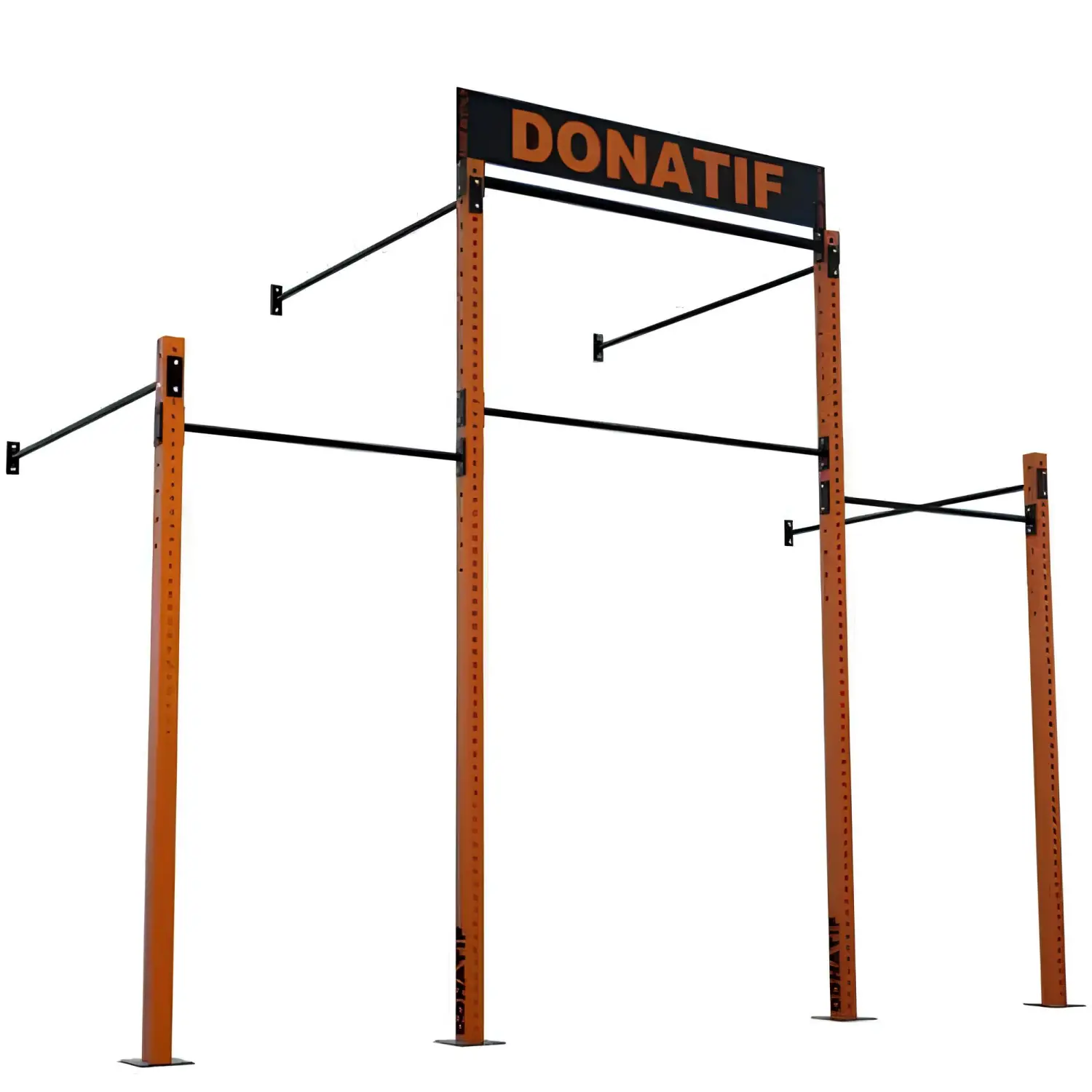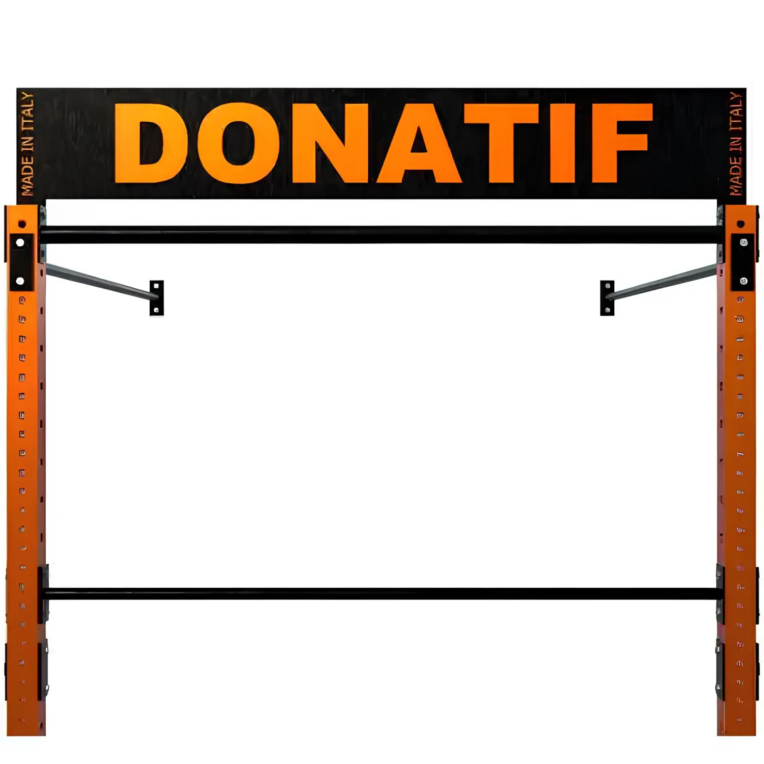 Le R6 Wall Rig de Donatif est une structure conçue pour un usage professionnel, idéale pour les gymnases et les centres de fitness. Conçu entièrement en Italie, le Rig est construit avec de l’acier de haute qualité, en utilisant des tubes carrés de 80 x 80x3 mm pour assurer résistance et stabilité. Les barres de traction ont un diamètre de 33 mm et peuvent être ajustées tous les 5 cm, ce qui permet un entraînement polyvalent pour les athlètes de tous niveaux.