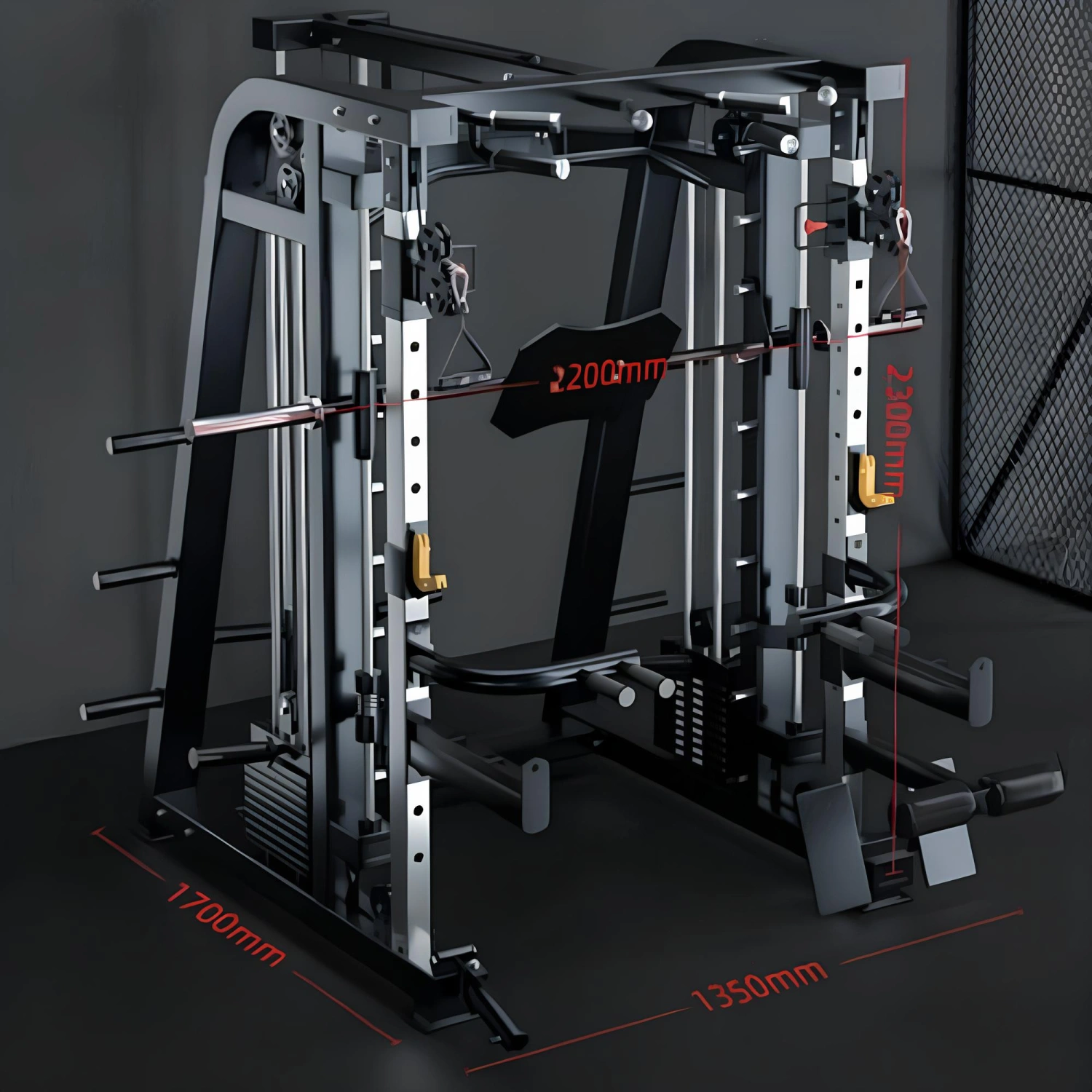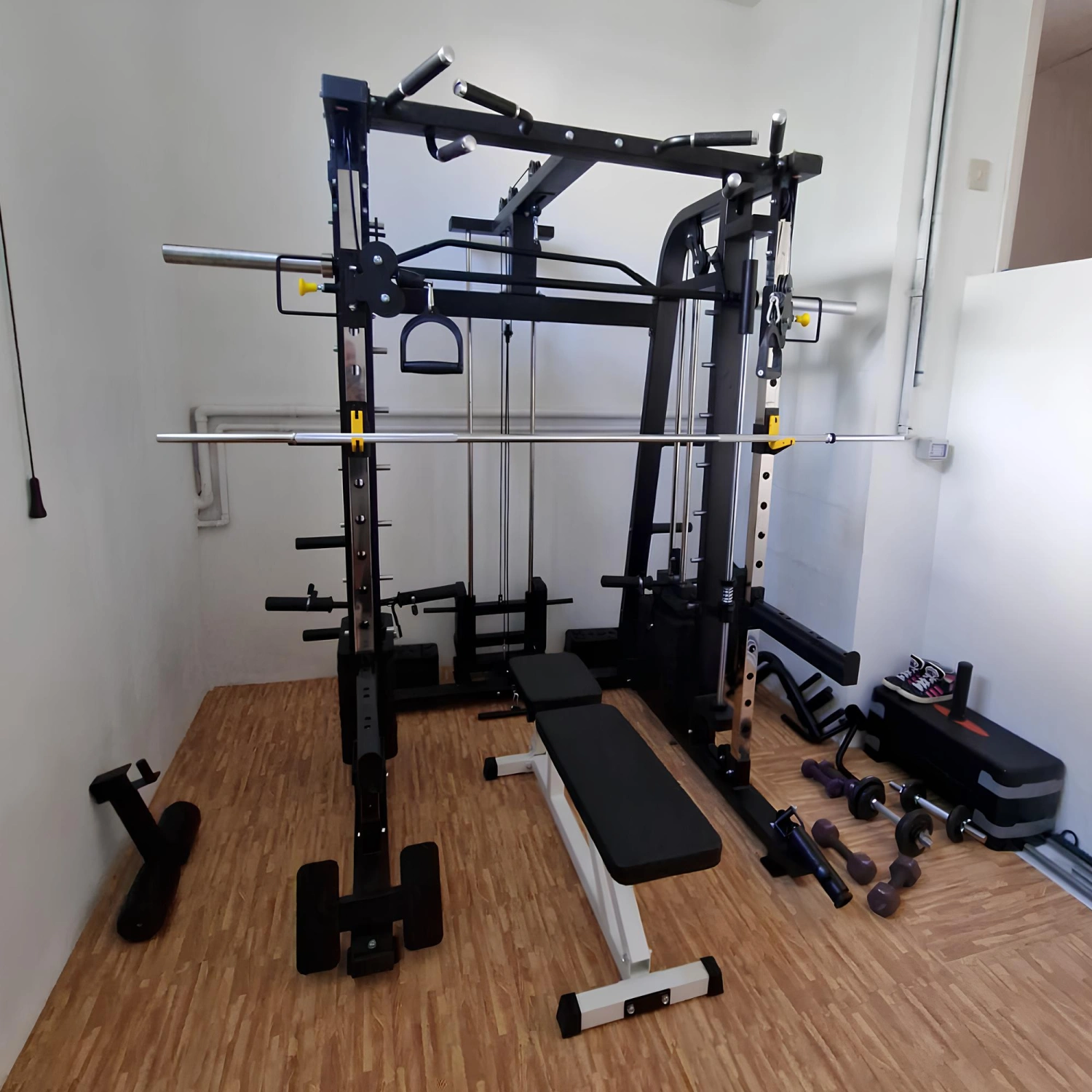 Il peut être utilisé dans de petits espaces grâce à sa conception compacte et à la possibilité de démonter certains composants, facilitant ainsi l’installation même dans des environnements domestiques. La machine Smith intégrée vous permet d’effectuer des exercices guidés, réduisant ainsi le risque de blessure et permettant un entraînement efficace même pour ceux qui n’ont pas beaucoup d’expérience.