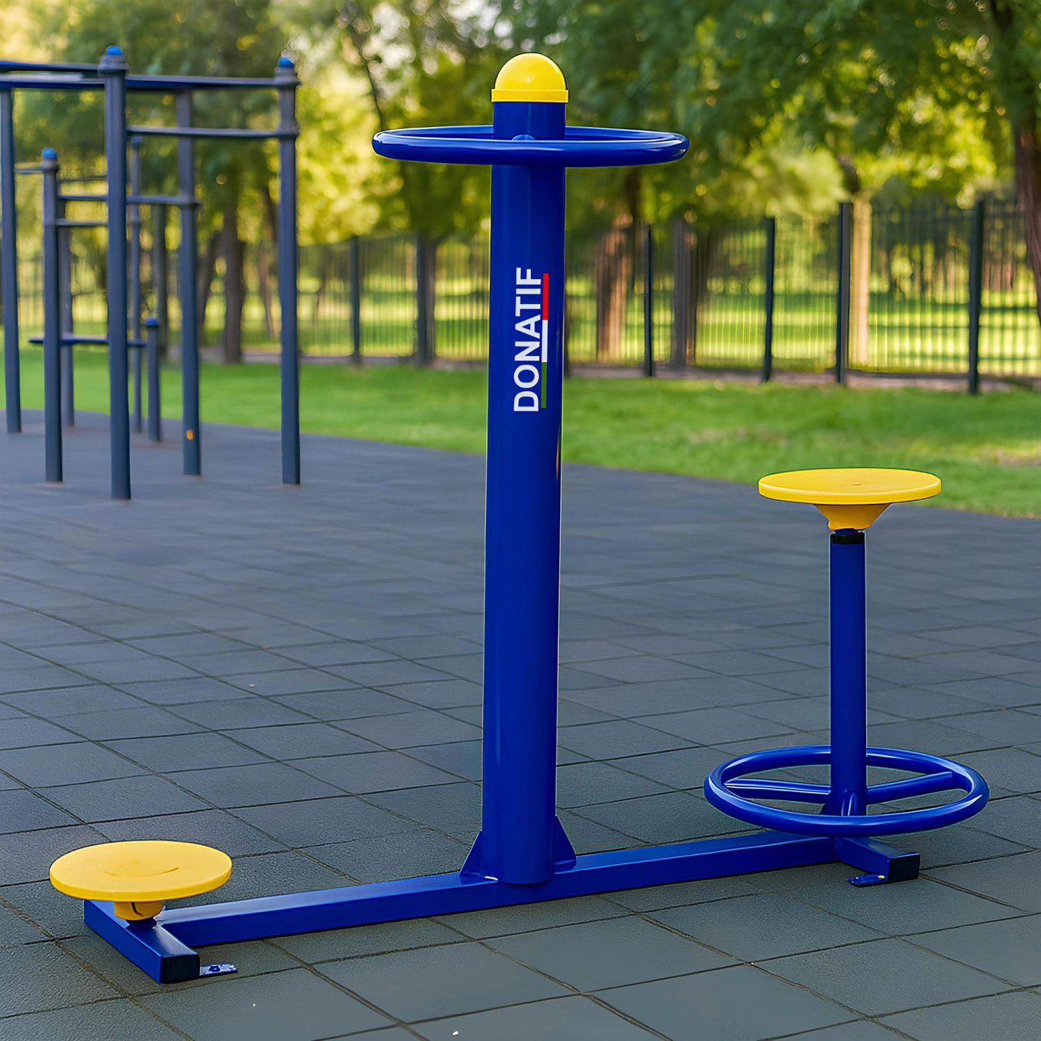 Le Sit and Stand Waist Twister Outdoor Donatif est un outil professionnel conçu pour améliorer la flexibilité et la force du tronc grâce à des mouvements de rotation contrôlés. Sa construction robuste et durable est idéale pour une installation dans des environnements extérieurs, tels que les parcs publics et les zones de fitness en plein air. Fabriqué avec des matériaux de haute qualité, il garantit durabilité, stabilité et sécurité maximale lors de l’utilisation.