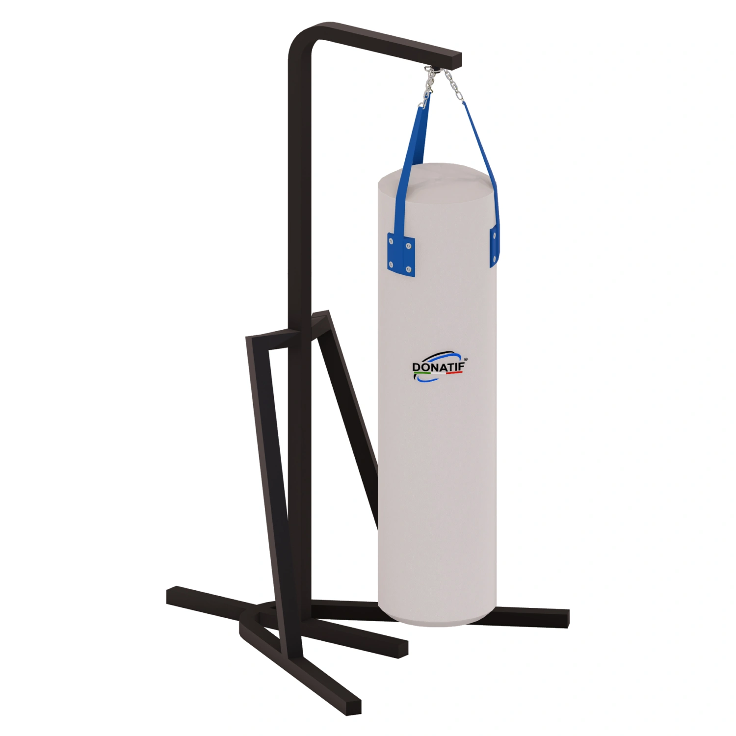 Vous pouvez choisir les couleurs du sac et de la structure, ajouter des accessoires, des fonctionnalités supplémentaires et même insérer le logo de votre salle de sport pour une identité visuelle cohérente et professionnelle. L’installation est simple et immédiate grâce aux boulons inclus. La structure est autoportante, elle ne nécessite pas de fixations murales ou de plafond.