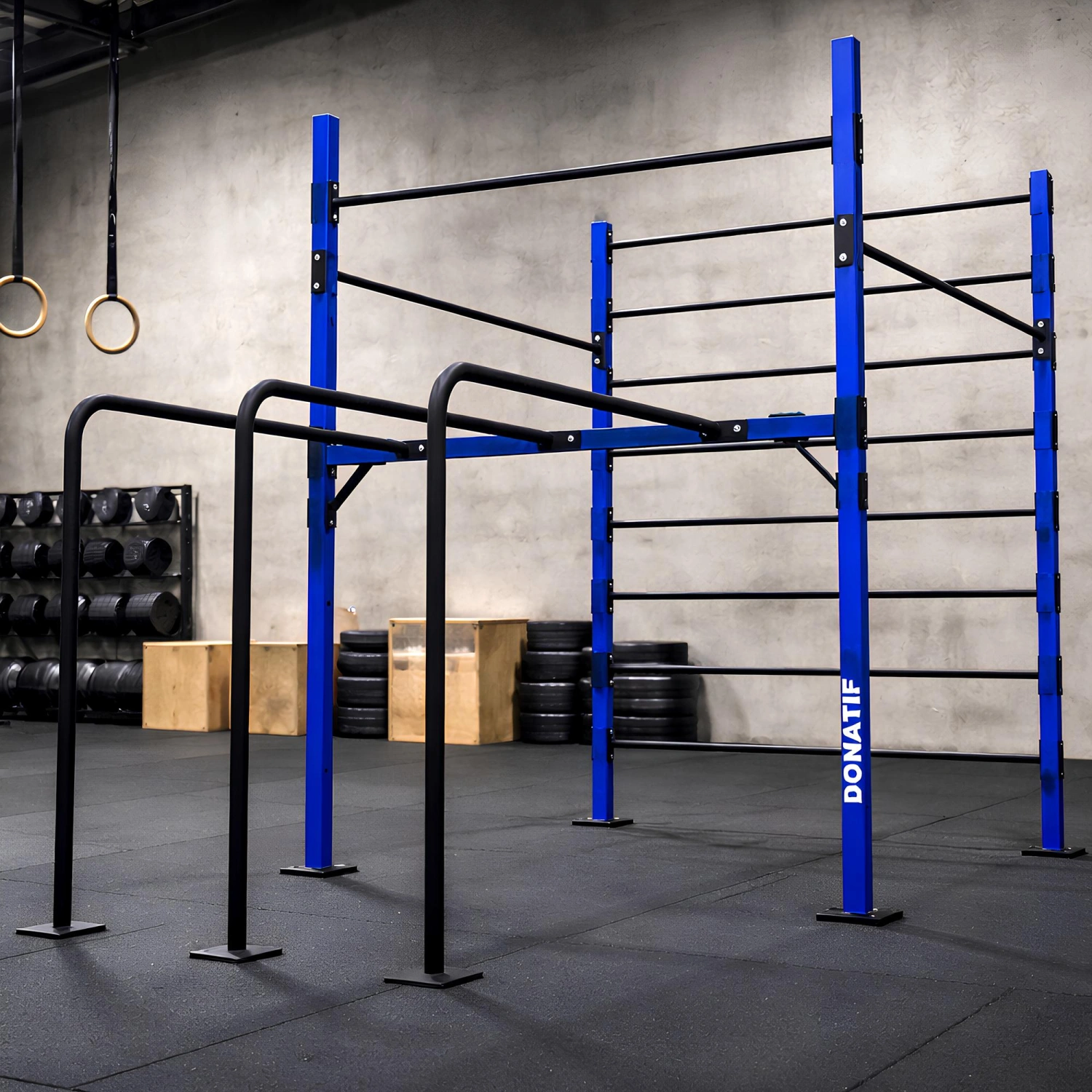 Cette structure est idéale pour une grande variété d’utilisations, tant à l’intérieur qu’à l’extérieur. Il peut être installé dans des gymnases, des gymnases à domicile, des centres de fitness, ou même dans des parcs publics et des jardins privés. La version extérieure est traitée par galvanisation avant revêtement en poudre, afin d’assurer une protection durable contre la rouille et les intempéries.