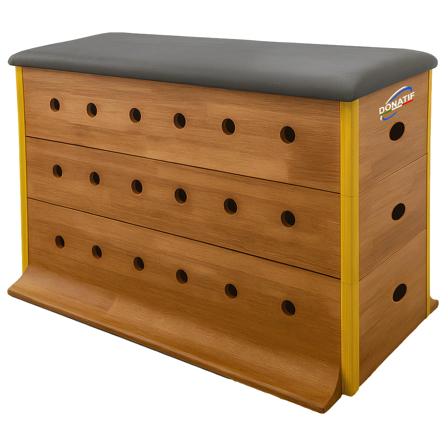 La structure modulaire en bois PK34 combine des dimensions compactes, deux hauteurs, une couverture souple et une finition technique : elle convient donc aussi bien à ceux qui débutent et veulent apprendre les mouvements de base du parkour, qu’aux pratiquants plus expérimentés à la recherche d’un soutien stable pour des exercices spécifiques. Sa modularité et sa robustesse en font un choix judicieux pour les environnements privés et les centres dédiés. De plus, avec Donatif vous pouvez compter sur un service complet : assistance personnalisée, projets sur mesure, expéditions rapides et montage disponibles dans toute l’Italie et à l’étranger, même pendant les vacances. Faites confiance à une entreprise jeune, compétente et orientée résultats, tout comme vous.