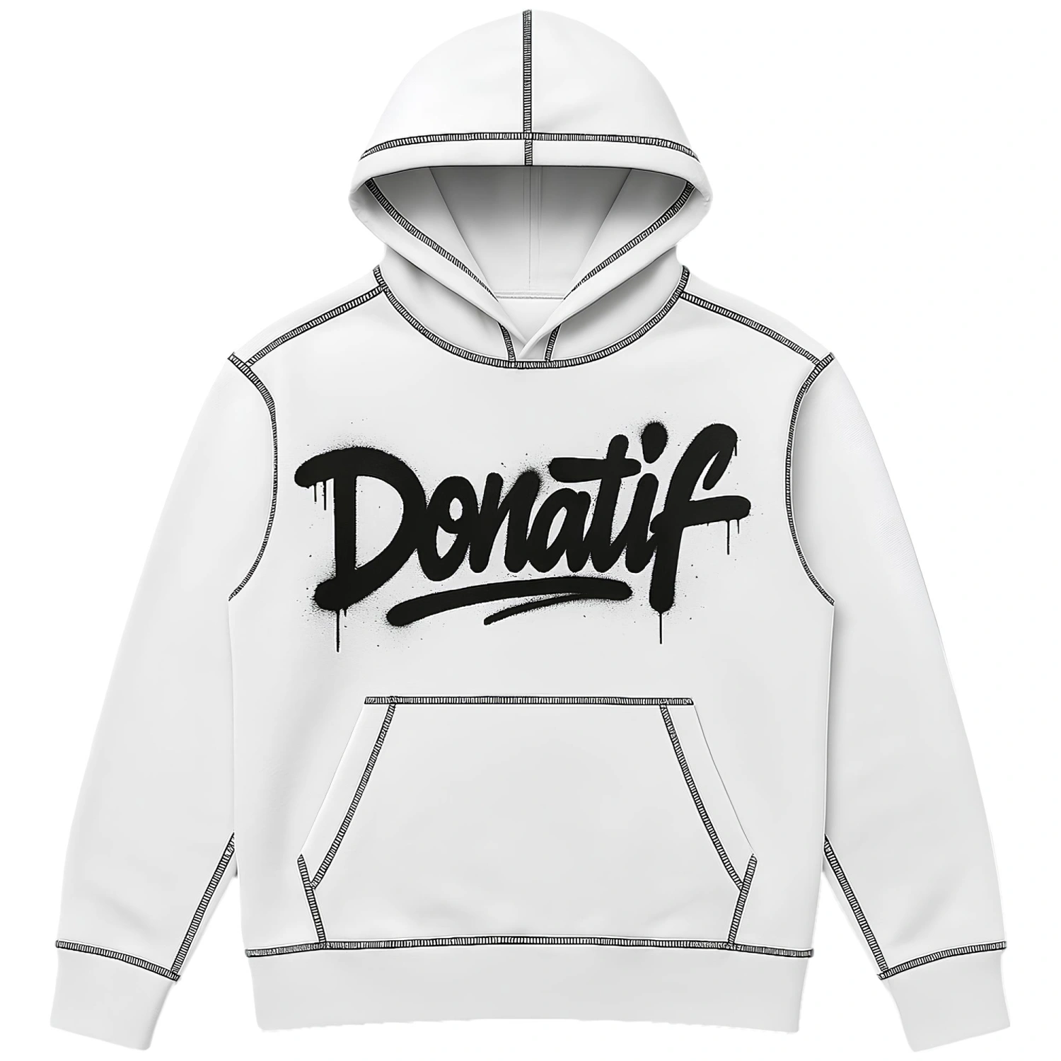 Le tissu est en molleton de coton de qualité supérieure, chaud mais respirant, conçu pour vous accompagner après l’entraînement ou pour affronter les journées actives en ville. Des coutures contrastées noires soulignent chaque ligne de la construction et amplifient son esthétique urbaine. Le logo Donatif de style graffiti complète le design avec une signature forte, jeune et affirmée. Chaque vêtement est entièrement fini à la main en Italie, avec une attention artisanale aux détails, de la fermeture éclair à l’imprimé.