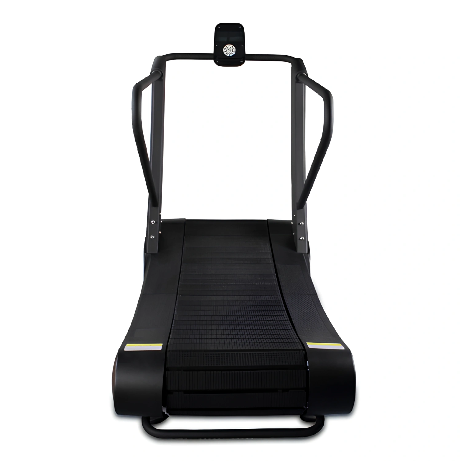 Le tapis roulant incurvé pour l’entraînement - TRC20 est idéal pour une variété d’entraînements, vous permettant de personnaliser votre entraînement en fonction de vos besoins et de vos capacités, améliorant ainsi l’endurance cardiorespiratoire et la force musculaire. Notre tapis de course est un équipement innovant conçu pour offrir une expérience de course naturelle et efficace. Grâce à sa structure sans moteur, le mouvement de la ceinture est entièrement régulé par l’utilisateur, ce qui vous permet d’adapter l’intensité de votre entraînement en fonction de votre vitesse et de votre effort. Cela le rend idéal pour un large éventail d’exercices, de la marche légère aux séances de course intenses. Sa polyvalence le rend parfait pour un usage professionnel, assurant un entraînement complet et performant. L’un des plus grands avantages du TRC20 est son impact sur les groupes musculaires. La conception incurvée oblige le corps à générer une poussée plus intense que les tapis roulants électriques, engageant activement les quadriceps, les ischio-jambiers et les mollets, qui travaillent pour soutenir le mouvement et assurer une conduite en douceur. Les fesses sont sollicitées surtout dans les phases de sprint ou d’accélération, contribuant à la puissance et à la stabilité du bassin. Le tronc joue également un rôle fondamental : les abdominaux et les lombaires sont activés pour maintenir une posture correcte et améliorer l’efficacité des mouvements. Enfin, les bras et les épaules participent également à l’entraînement, aidant à la coordination et à l’équilibre pendant la course. En plus des bienfaits musculaires, le tapis de course incurvé vous permet d’améliorer l’endurance cardiovasculaire grâce à la dépense énergétique requise plus importante par rapport aux modèles traditionnels. Le mouvement doux et naturel réduit le stress sur les articulations, tandis que l’absence de composants électriques en fait un choix écologique et nécessitant peu d’entretien. Avec le TRC20, chaque séance d’entraînement devient une expérience immersive, personnalisable et très efficace pour ceux qui veulent tirer le meilleur parti de leurs entraînements.