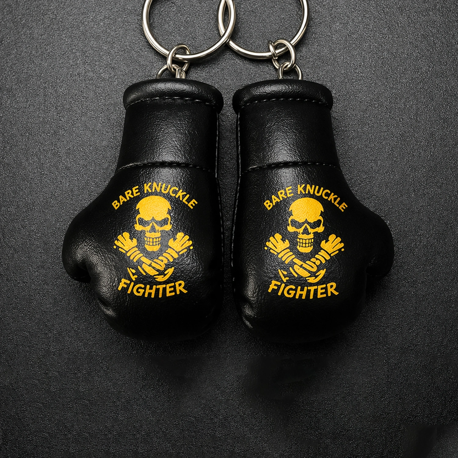 Il portachiavi guanto boxe è realizzato in ecopelle e riprende in scala ridotta la forma del classico guanto da combattimento. Le dimensioni compatte, pari a 7,5 cm di altezza e 4 cm di larghezza, lo rendono facile da portare con sé ogni giorno senza risultare ingombrante. La presenza dell’anello in metallo consente un aggancio stabile a chiavi, cerniere e accessori da palestra. Il risultato è un oggetto piccolo, ma riconoscibile, costruito per comunicare subito l’identità sportiva di chi lo utilizza.