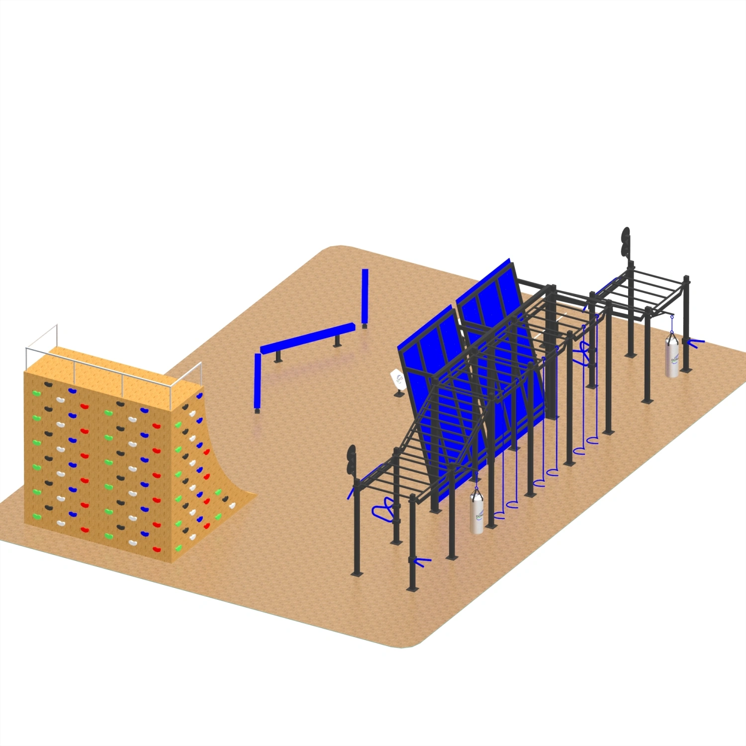 Questa Struttura Calisthenics con Rampa - CH36 offre un’ampia gamma di possibilità di allenamento, rendendola ideale per atleti, appassionati di fitness e praticanti di calisthenics. Sulle barre per trazioni si possono eseguire esercizi come pull-up, muscle-up e chin-up, utili per sviluppare la forza della parte superiore del corpo. Le monkey bar e le traverse consentono di lavorare su coordinazione, resistenza e grip, fondamentali anche per chi pratica obstacle race. Le parallele sono perfette per dip, push-up e plank, mentre le panche multifunzionali permettono allenamenti mirati su addominali e core stability. Le pareti inclinate allenano potenza e agilità, la rampa wall run stimola velocità, forza esplosiva e capacità di superare ostacoli, e la parete di arrampicata con prese colorate rafforza forza, equilibrio e mobilità. Infine, gli ostacoli bassi e le travi di equilibrio completano il percorso con esercizi dedicati alla stabilità, alla propriocezione e alla precisione dei movimenti.