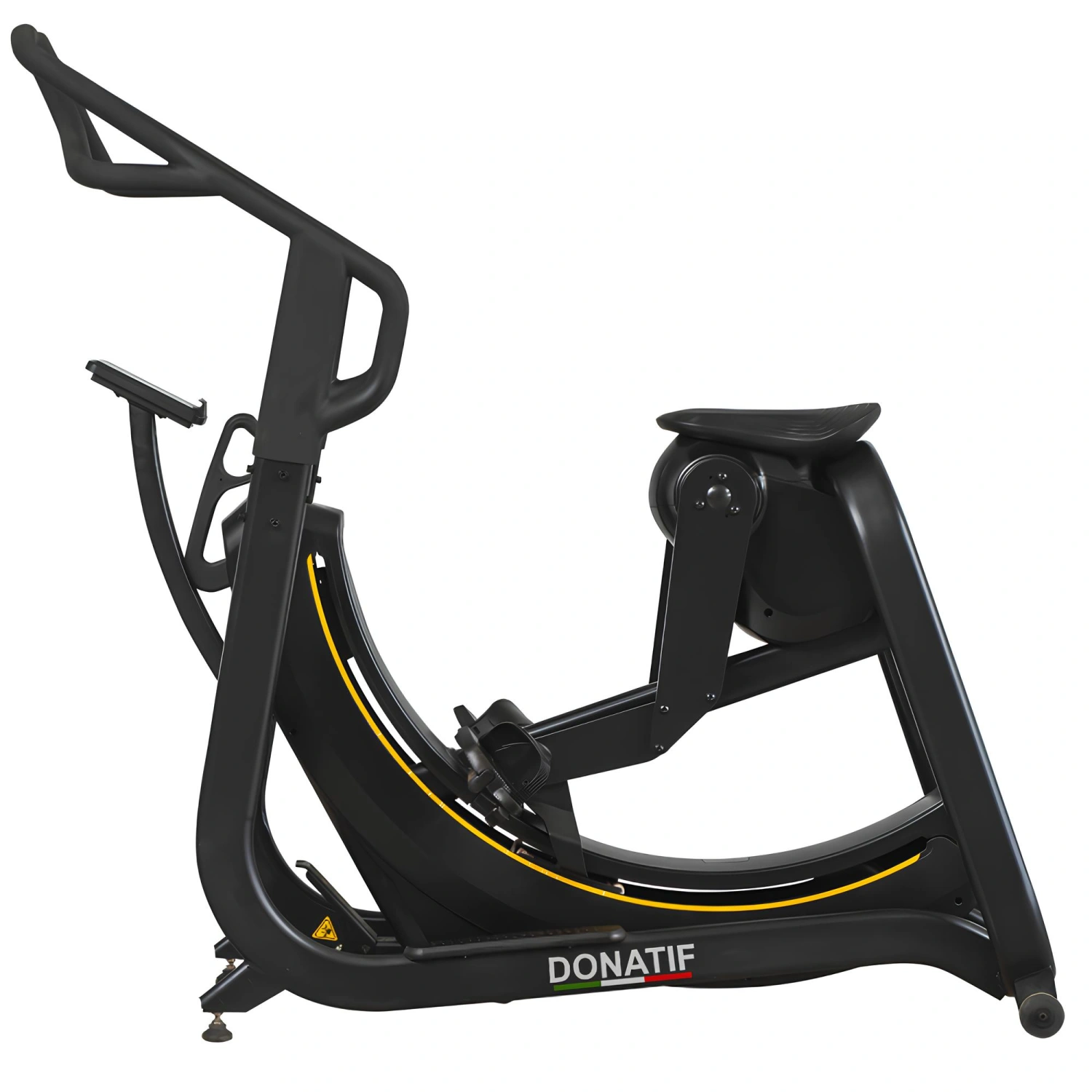 La Bicicletta Ellittica - Cross Trainer è ideale per l'allenamento atletico, può essere utilizzato in circuiti, sessioni di allenamento in piccoli gruppi o come stazione cardio autonoma. La bicicletta offre due posizioni attive: la posizione di accelerazione, che aumenta l'attivazione muscolare e costruisce forza nei muscoli della tibia e dei quadricipiti, e la posizione eretta, che rafforza i polpacci e i bicipiti femorali. Questa versatilità la rende adatta sia per atleti professionisti che per appassionati di fitness che desiderano migliorare velocità e potenza. Grazie al design senza cavi, può essere facilmente collocata in qualsiasi ambiente.